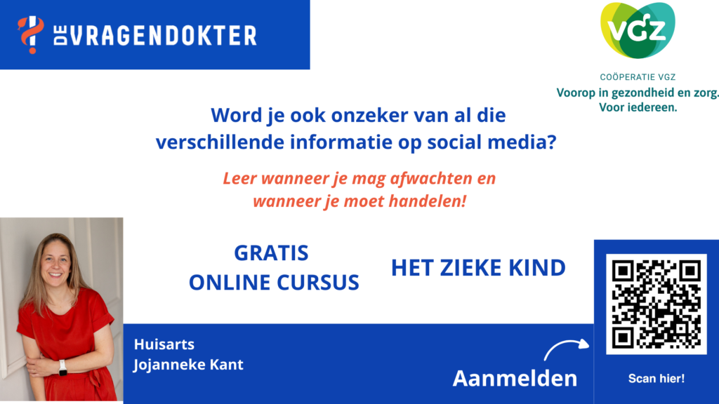 Je bent niet de enige. Zieke kinderen kunnen je onzeker maken, zelfs als het niet de eerste keer is dat ze ziek zijn. Daarom heeft huisarts Jojanneke Kant, bekend onder de naam “De Vragendokter”, in samenwerking met VGZ een gratis cursus ‘Eerste Hulp bij Zieke Kinderen’ gemaakt. In deze cursus leer je wat normaal is, wat je zelf kunt doen zodat je kind zich minder ziek voelt en wanneer je hulp moet inschakelen.